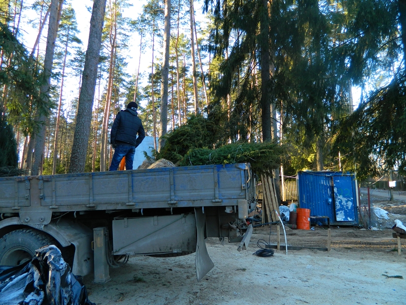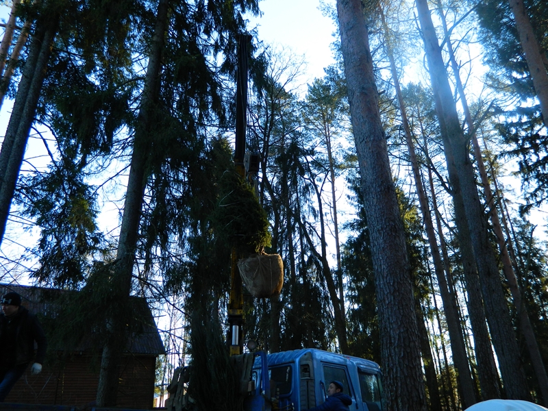 Посадка крупномеров (больших деревьев)